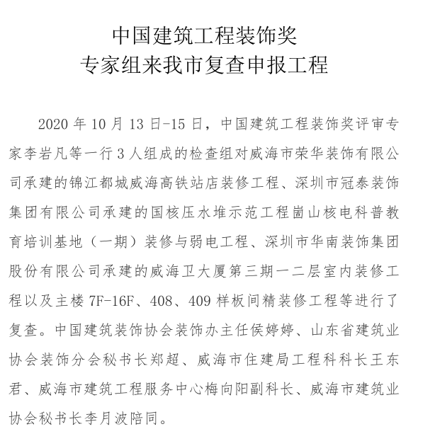 >中國建筑工程裝飾獎專家組來我市復查申報工程