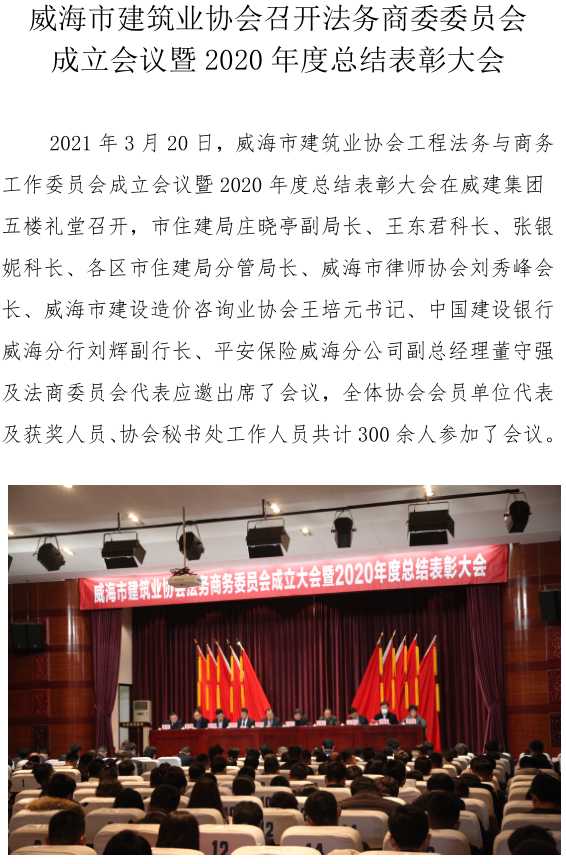 >威海市建筑業(yè)協(xié)會召開法務(wù)商委委員會 成立會議暨2020年度總結(jié)表彰大會
