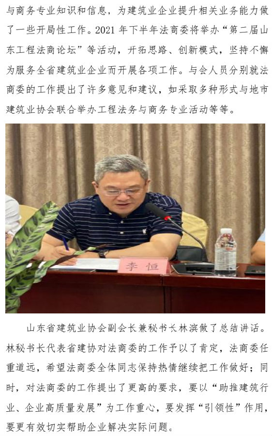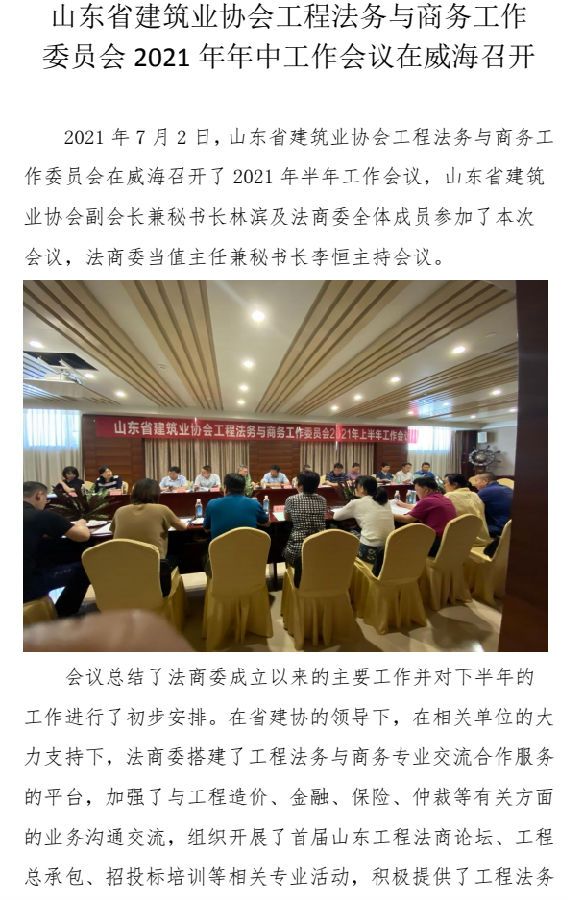 山東省建筑業(yè)協(xié)會工程法務(wù)與商務(wù)工作 委員會2021年年中工作會議在威海召開