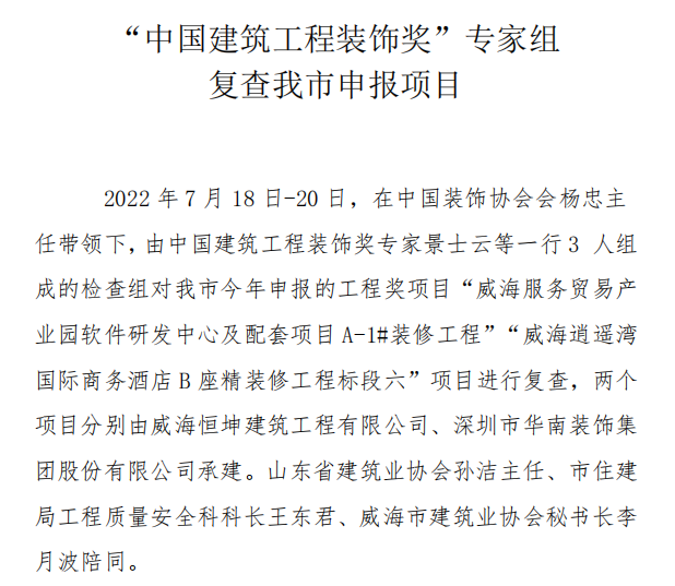 >“中國(guó)建筑工程裝飾獎(jiǎng)”專家組 復(fù)查我市申報(bào)項(xiàng)目