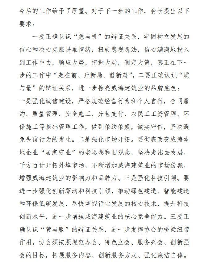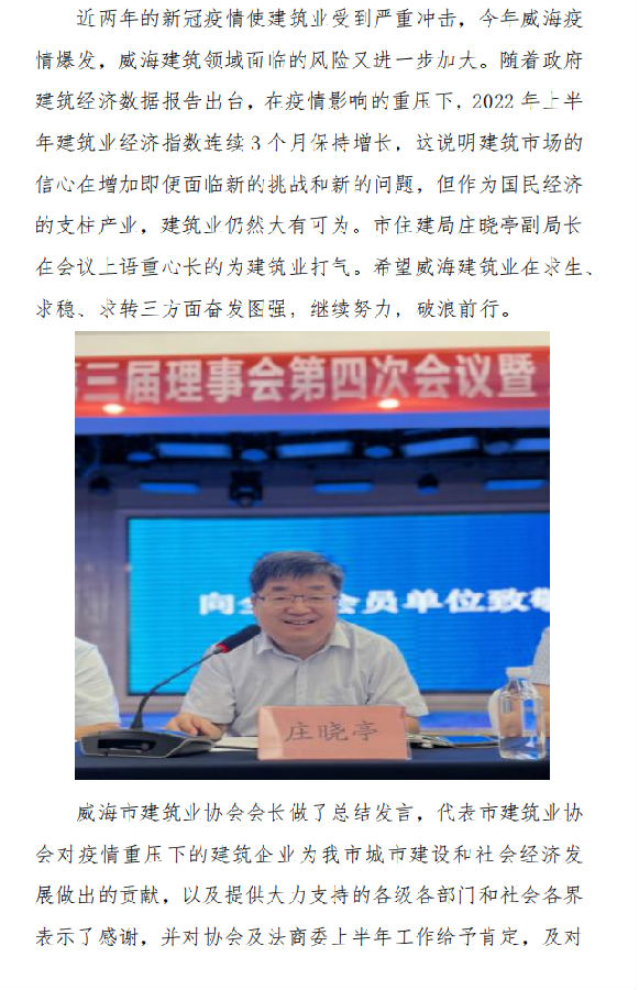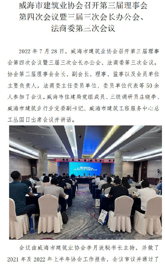 威海市建筑業(yè)協(xié)會(huì)召開(kāi)第三屆理事會(huì) 第四次會(huì)議暨三屆三次會(huì)長(zhǎng)辦公會(huì)、 法商委第三次會(huì)議