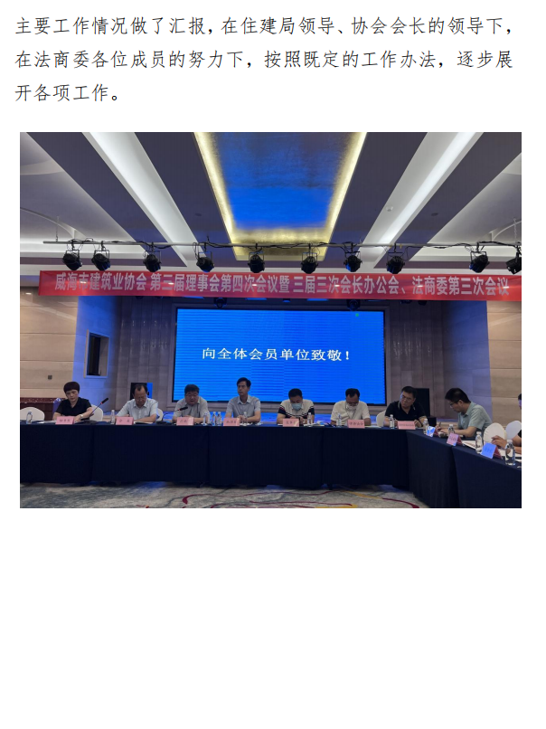 - 當(dāng)前位置:首頁(yè) >焦點(diǎn)新聞>威海市建筑業(yè)協(xié)會(huì)召開(kāi)第三屆理事會(huì) 第四次會(huì)議暨三屆三次會(huì)長(zhǎng)辦公會(huì)、 法商委第三次會(huì)議