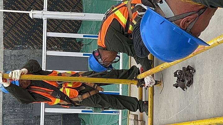 實(shí)際操作技能考試分23個(gè)小組分三個(gè)階段進(jìn)行比賽,參賽人員首先穿戴相關(guān)防護(hù)用品,安全帽安全帶等,每位選手都在規(guī)定的時(shí)間能完成防護(hù)用品的穿戴;第二階段-滿(mǎn)堂支撐架的搭設(shè):參賽人員開(kāi)始按照?qǐng)D紙搭設(shè)滿(mǎn)堂支撐架,過(guò)程中裁判員將對(duì)搭設(shè)過(guò)程中的規(guī)范操作進(jìn)行動(dòng)態(tài)評(píng)分,搭設(shè)結(jié)束后裁判員對(duì)搭設(shè)成果進(jìn)行評(píng)分;第三階段-外腳手架的搭設(shè):參賽人員開(kāi)始按照?qǐng)D紙搭設(shè)外腳手架,過(guò)程中裁判員將對(duì)搭設(shè)過(guò)程中的規(guī)范操作進(jìn)行動(dòng)態(tài)評(píng)分,搭設(shè)結(jié)束后裁判員對(duì)搭設(shè)成果進(jìn)行評(píng)分,大賽裁判長(zhǎng)宮海波表示,實(shí)操競(jìng)賽的幾個(gè)項(xiàng)目綜合考驗(yàn)了參賽者的搭建的穩(wěn)定、精準(zhǔn)和速度等。