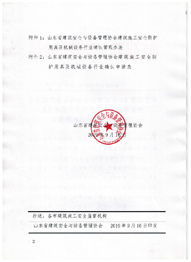 >轉發(fā)山東省建筑安全與設備管理協(xié)會關于印發(fā)《山東省建筑安全與設備管理協(xié)會建筑施工安全防護用具及機械設備行業(yè)確認管理辦法》的通知