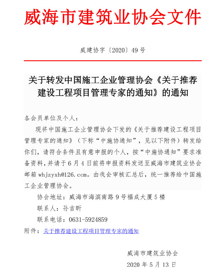 關于轉發(fā)中國施工企業(yè)管理協(xié)會《關于推薦 建設工程項目管理專家的通知》的通知