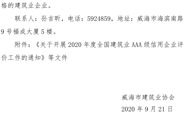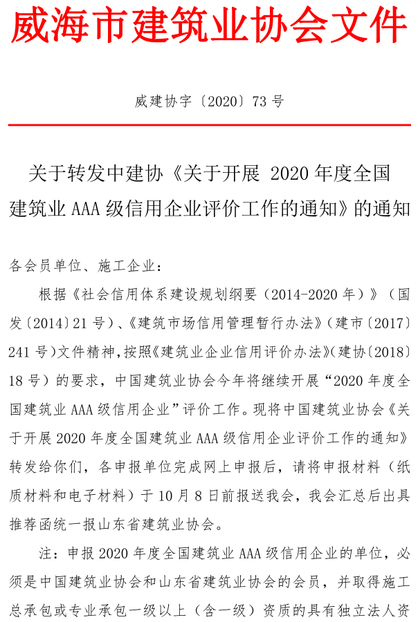 關(guān)于轉(zhuǎn)發(fā)中建協(xié)《關(guān)于開展 2020年度全國建筑業(yè)AAA級信用企業(yè)評價工作的通知》的通知