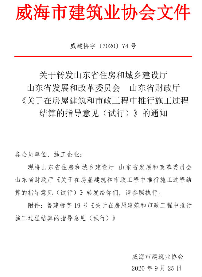 • 當(dāng)前位置:首頁(yè) >文件公告>關(guān)于轉(zhuǎn)發(fā)山東省住房和城鄉(xiāng)建設(shè)廳 山東省發(fā)展和改革委員會(huì) 山東省財(cái)政廳 《關(guān)于在房屋建筑和市政工程中推行施工過(guò)程結(jié)算的指導(dǎo)意見(jiàn)(試行)》的通知