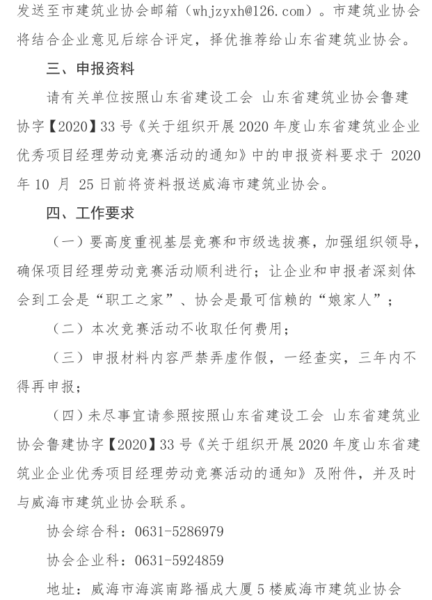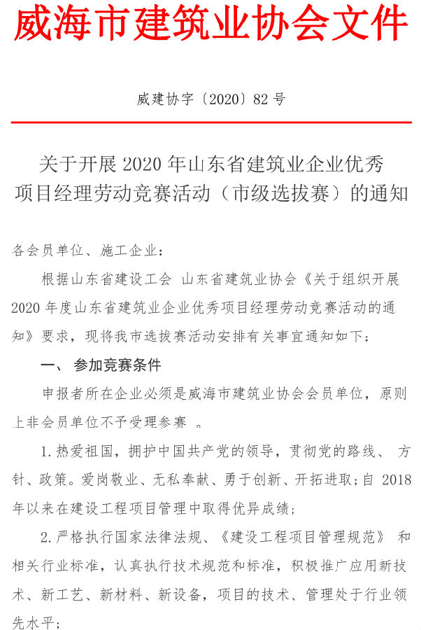 • 當(dāng)前位置:首頁(yè) >文件公告>關(guān)于開(kāi)展2020年山東省建筑業(yè)企業(yè)優(yōu)秀 項(xiàng)目經(jīng)理勞動(dòng)競(jìng)賽活動(dòng)(市級(jí)選拔賽)的通知