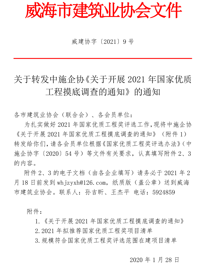 關于轉發(fā)中施企協(xié)《關于開展2021年國家優(yōu)質工程摸底調查的通知》的通知
