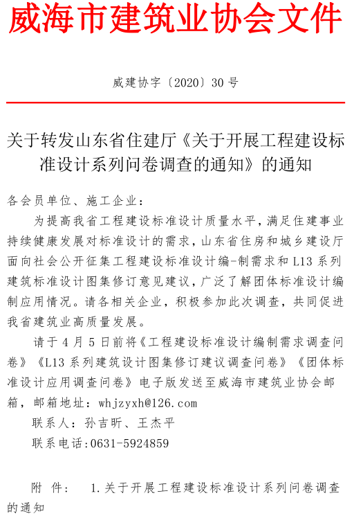 關(guān)于轉(zhuǎn)發(fā)山東省住建廳《關(guān)于開(kāi)展工程建設(shè)標(biāo)準(zhǔn)設(shè)計(jì)系列問(wèn)卷調(diào)查的通知》的通知