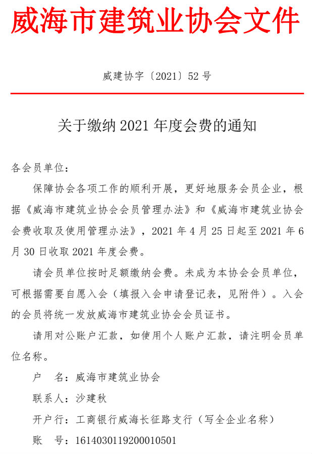 >關(guān)于繳納2021年度會費(fèi)的通知