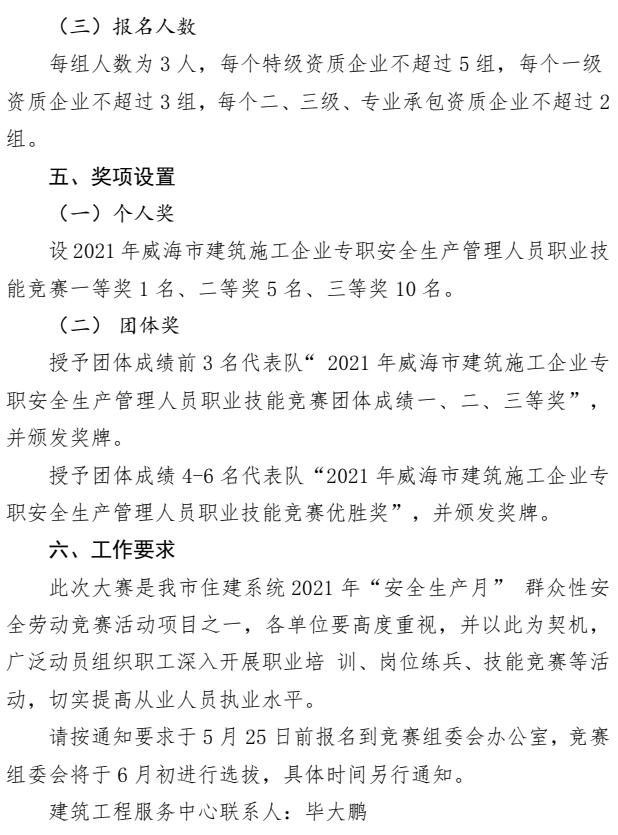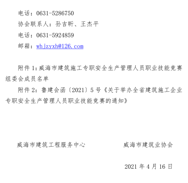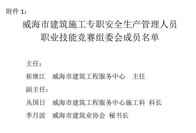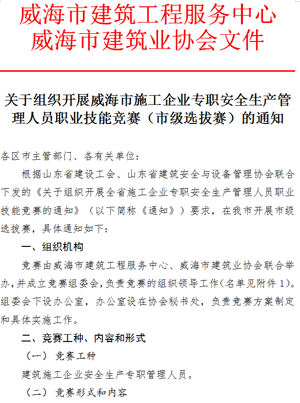 >關(guān)于組織開展威海市施工企業(yè)專職安全生產(chǎn)管理人員職業(yè)技能競賽(市級選拔賽)的通知
