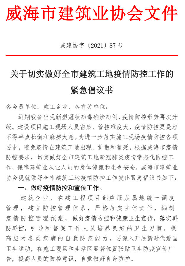 >關(guān)于切實(shí)做好全市建筑工地疫情防控工作的 緊急倡議書