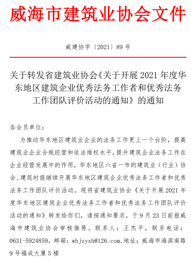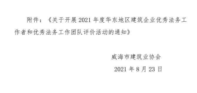 關(guān)于轉(zhuǎn)發(fā)省建筑業(yè)協(xié)會(huì)《關(guān)于開(kāi)展2021年度華東地區(qū)建筑企業(yè)優(yōu)秀法務(wù)工作者和優(yōu)秀法務(wù) 工作團(tuán)隊(duì)評(píng)價(jià)活動(dòng)的通知》的通知