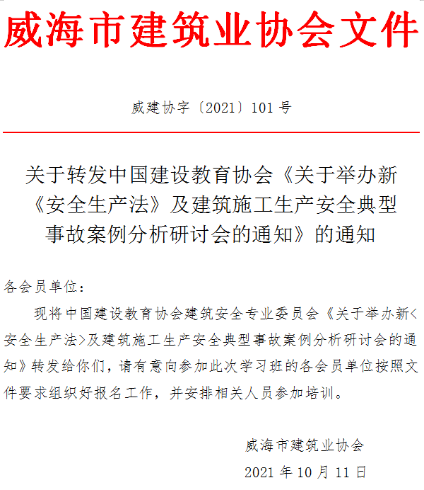 • 當(dāng)前位置:首頁(yè) >文件公告>關(guān)于轉(zhuǎn)發(fā)中國(guó)建設(shè)教育協(xié)會(huì)《關(guān)于舉辦新 《安全生產(chǎn)法》及建筑施工生產(chǎn)安全典型 事故案例分析研討會(huì)的通知》的通知
