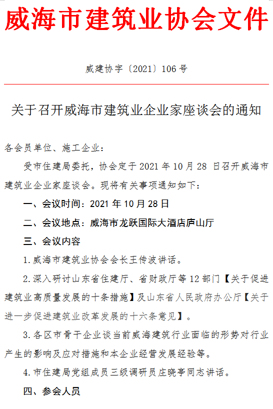 >關(guān)于召開威海市建筑業(yè)企業(yè)家座談會的通知