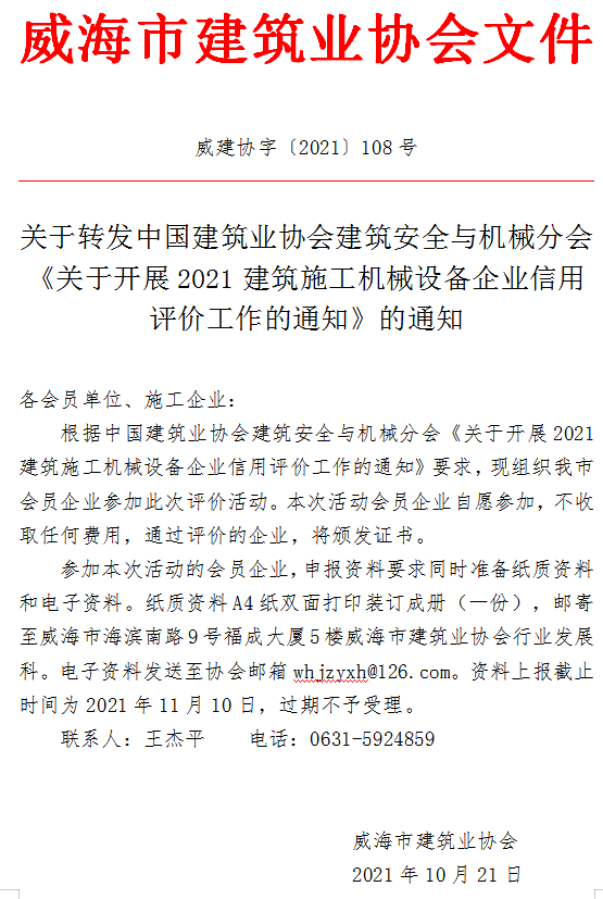 • 當(dāng)前位置:首頁(yè) >文件公告>關(guān)于轉(zhuǎn)發(fā)中國(guó)建筑業(yè)協(xié)會(huì)建筑安全與機(jī)械分會(huì)《關(guān)于開展2021建筑施工機(jī)械設(shè)備企業(yè)信用評(píng)價(jià)工作的通知》的通知