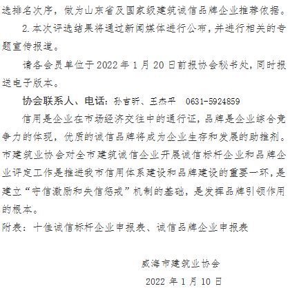 >關(guān)于開展威海市建筑業(yè)誠(chéng)信標(biāo)桿企業(yè)、誠(chéng)信品牌企業(yè)評(píng)定工作的通知