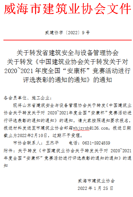 關(guān)于轉(zhuǎn)發(fā)《中國建筑業(yè)協(xié)會關(guān)于轉(zhuǎn)發(fā)關(guān)于 對 2020~2021 年度全國“安康杯”競賽活動 進(jìn)行評選表彰的通知的通知》的通知