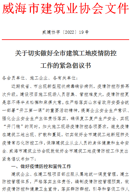 >關(guān)于切實(shí)做好全市建筑工地疫情防控工作的緊急倡議書