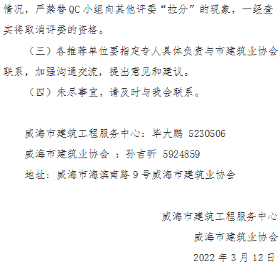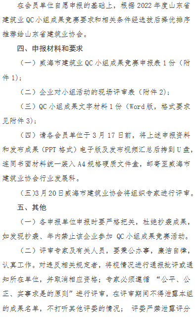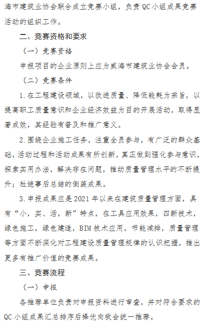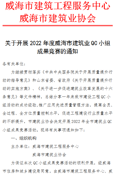 >關(guān)于開展2022年度威海市建筑業(yè)QC小組成果競(jìng)賽的通知