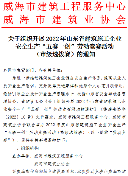 >關(guān)于組織開展2022年山東省建筑施工企業(yè)安全生產(chǎn)“五賽一創(chuàng)”勞動(dòng)競賽活動(dòng)