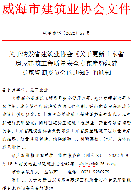 關(guān)于轉(zhuǎn)發(fā)省建筑業(yè)協(xié)會(huì)《關(guān)于更新山東省房屋建筑工程質(zhì)量安全專家?guī)祠呓M建專家咨詢委員會(huì)的通知》的通知