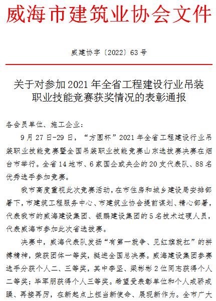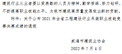 >關于對參加2021年全省工程建設行業(yè)吊裝職業(yè)技能競賽獲獎情況的表彰通報