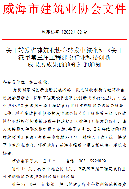 • 當(dāng)前位置:首頁 >文件公告>關(guān)于轉(zhuǎn)發(fā)省建筑業(yè)協(xié)會(huì)轉(zhuǎn)發(fā)中施企協(xié)《關(guān)于征集第三屆工程建設(shè)行業(yè)科技創(chuàng)新成果展成果的通知》的通知