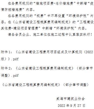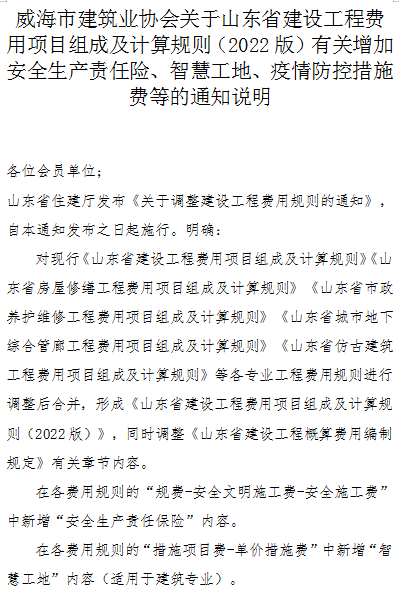 安責(zé)險、智慧工地和疫情防控措施費--威海市建筑業(yè)協(xié)會關(guān)于山東省住建廳發(fā)布《關(guān)于調(diào)整建設(shè)工程費用規(guī)則的通知》的說明