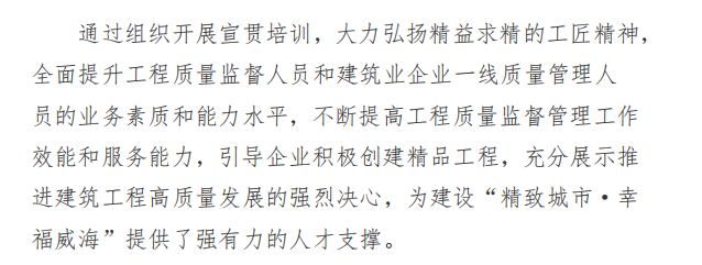 威海市工程質(zhì)量監(jiān)督管理專題培訓會 順 利 召 開