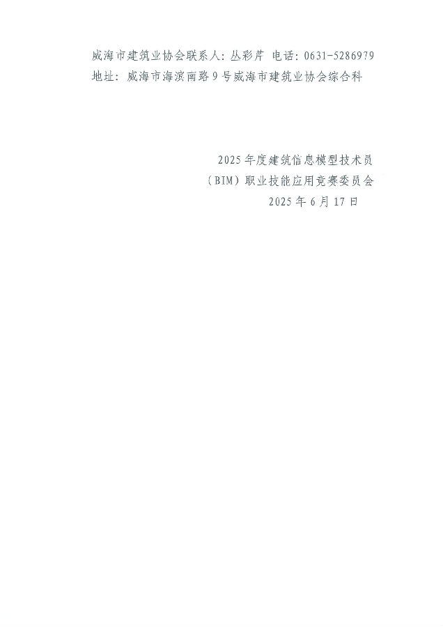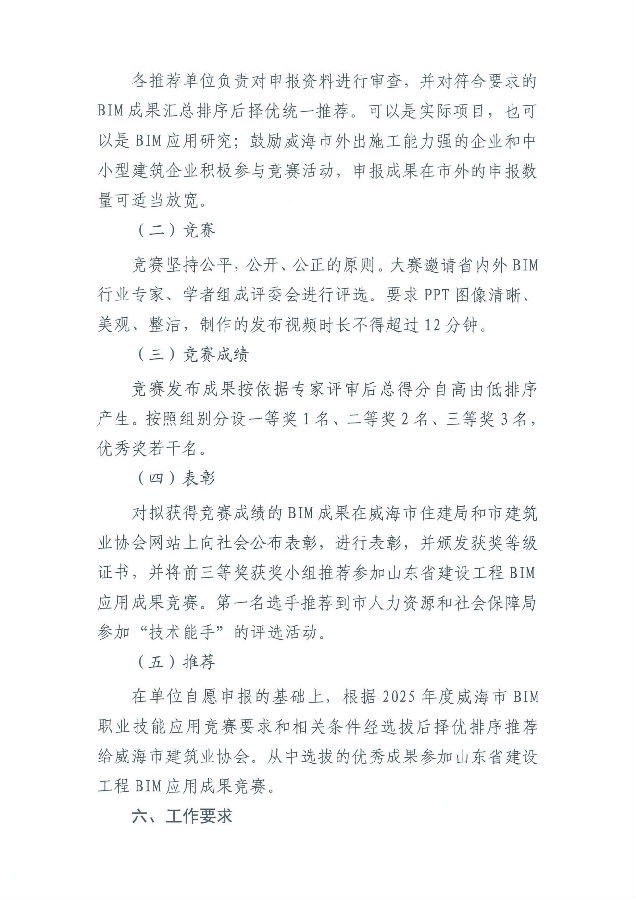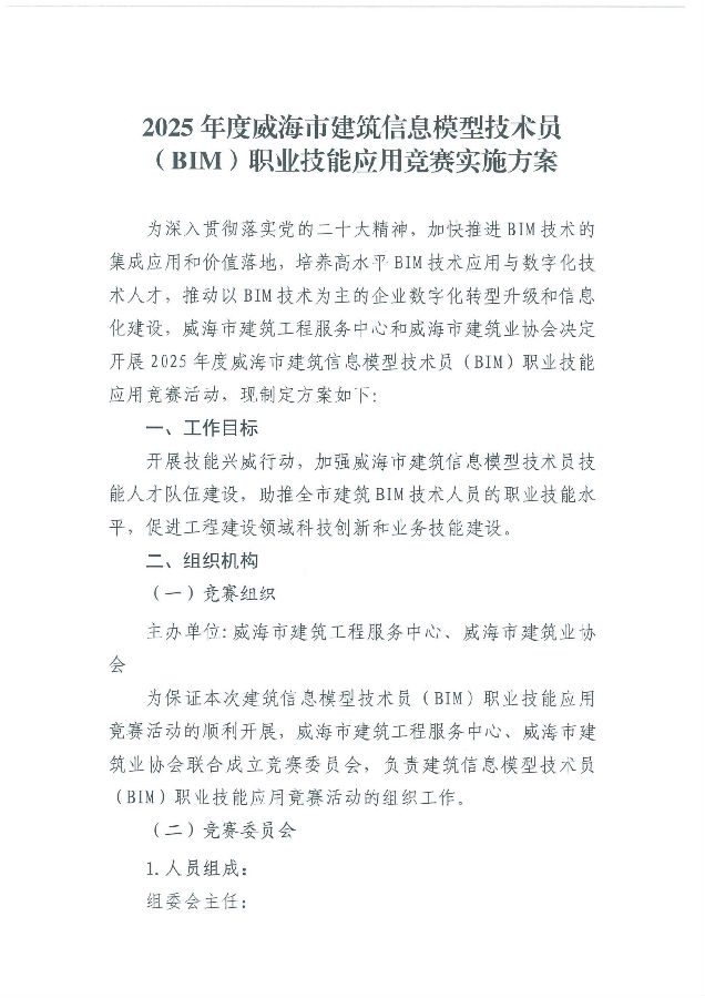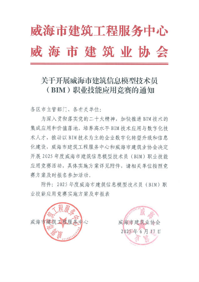 關于開展威海市建筑信息模型技術員(BIM)職業(yè)技能應用競賽的通知