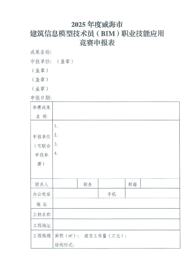 2025年度威海市建筑信息模型技術員(BIM)職業(yè)技能應用競賽申報表.docx