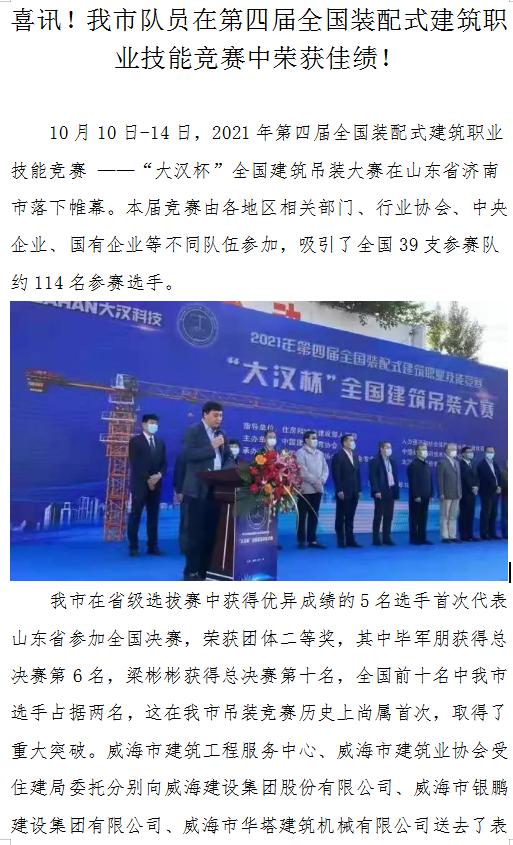 喜訊!我市隊員在第四屆全國裝配式建筑職業(yè)技能競賽中榮獲佳績!