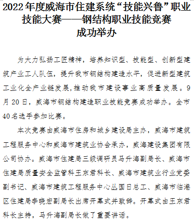 >2022年度威海市住建系統(tǒng)“技能興魯”職業(yè)技能大賽——鋼結(jié)構(gòu)職業(yè)技能競賽成功舉辦