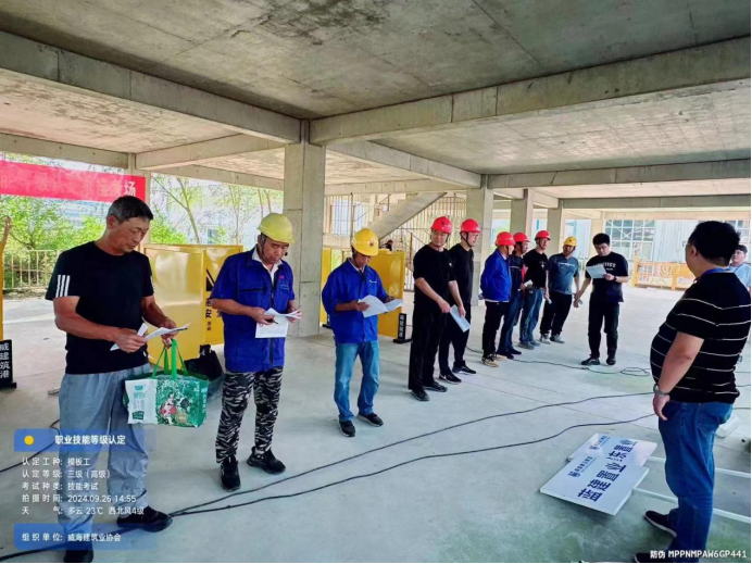 2024年9月26日——27日威海市建筑業(yè)協(xié)會舉辦了建筑行業(yè)職業(yè)技能等級認定考試——(混凝土模板工、鋼筋工)三級。兩個專業(yè)共計43人參與本次考核。